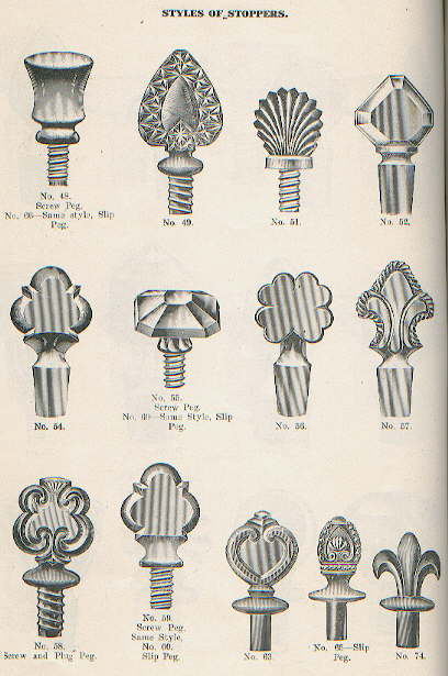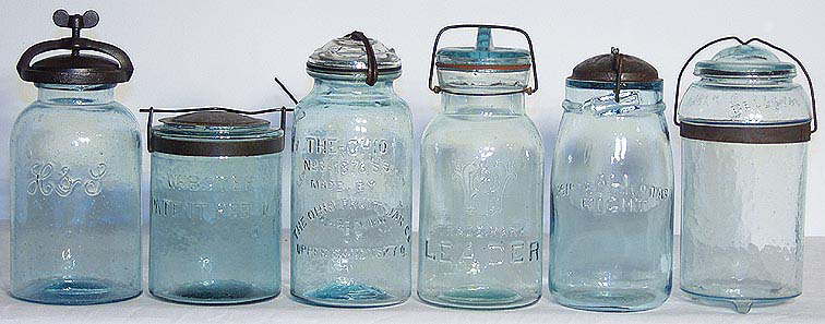 The use of bottles - and the need for varied closures to seal them - arose with an expanding city based market and even then for just a few types of bottled goods - primarily liquor, wine, and patent medicines in the early 19th century. As cities and relative affluence spread, the market and demand for bottled goods increased rapidly. At the same time, the expansion of the ever growing population into the farming regions of the Midwest created a need for methods and equipment to preserve foods. Thus, the need for canning jars. With the expansion of these demands came the need for suitable containers all of which had to be properly sealed to function. Parallel with the creativity of bottle & jar makers in satisfying this demand for glass containers, the creative juices of closure designers were unleashed. The thousands of different closure designs patented during the 19th century are a testament to that creativity, though most probably never made it into widespread manufacture (Lief 1965; Toulouse 1969a). This variety is illustrated later on this page with links to several dozen canning jars exhibiting a kaleidoscope of closure types most of which saw very limited popularity and use. Like finishes, the subject of closures is a complicated one with the variety of closures exceeding the variety of finishes. Though thousands of closure designs were patented, and many hundreds used, just a handful achieved widespread popularity based on inherent simplicity and effectiveness. The major closure types are what is covered on this page. Minor and obscure closure types are beyond the scope of this website as such information would at best only marginally assist in the goals of the site (dating & typing a bottle) and would occupy an inordinate amount of space (see Reference Notes below).