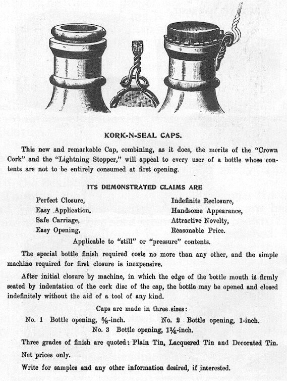 carbonated products; wire was often used under the capsule to more fully secure