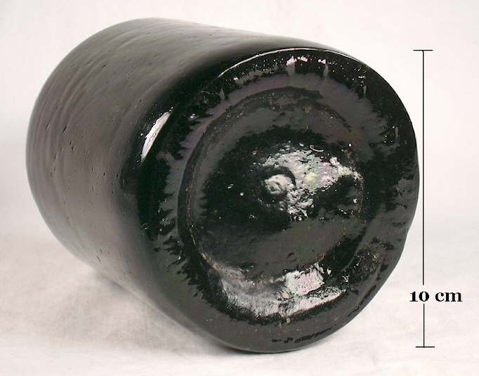 Black glass is one of the oldest bottle colors going back historically well beyond the time frames covered by this website - to at least the early 17th century in Europe (Van den Bossche 2001). Black glass beverage bottles (known as "junk bottles" by early glassmakers) and fragments are ubiquitous on historic sites that date prior to 1880 (McKearin & Wilson 1978:229-232). Black glass liquor and ale/beer bottles "...were mass produced as a cheap container between the 1840s and 1880s...in a thousand shapes and sizes" (Wilson & Wilson 1968). There is no measurable line delineating the point where olive green and olive amber become black glass except as noted at the beginning of this section as glass that appears "...black in reflected light..." (McKearin & Wilson 1978).