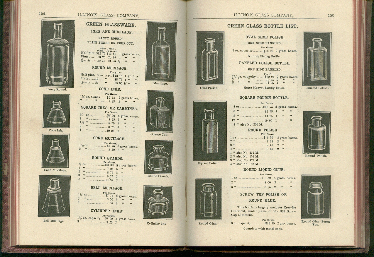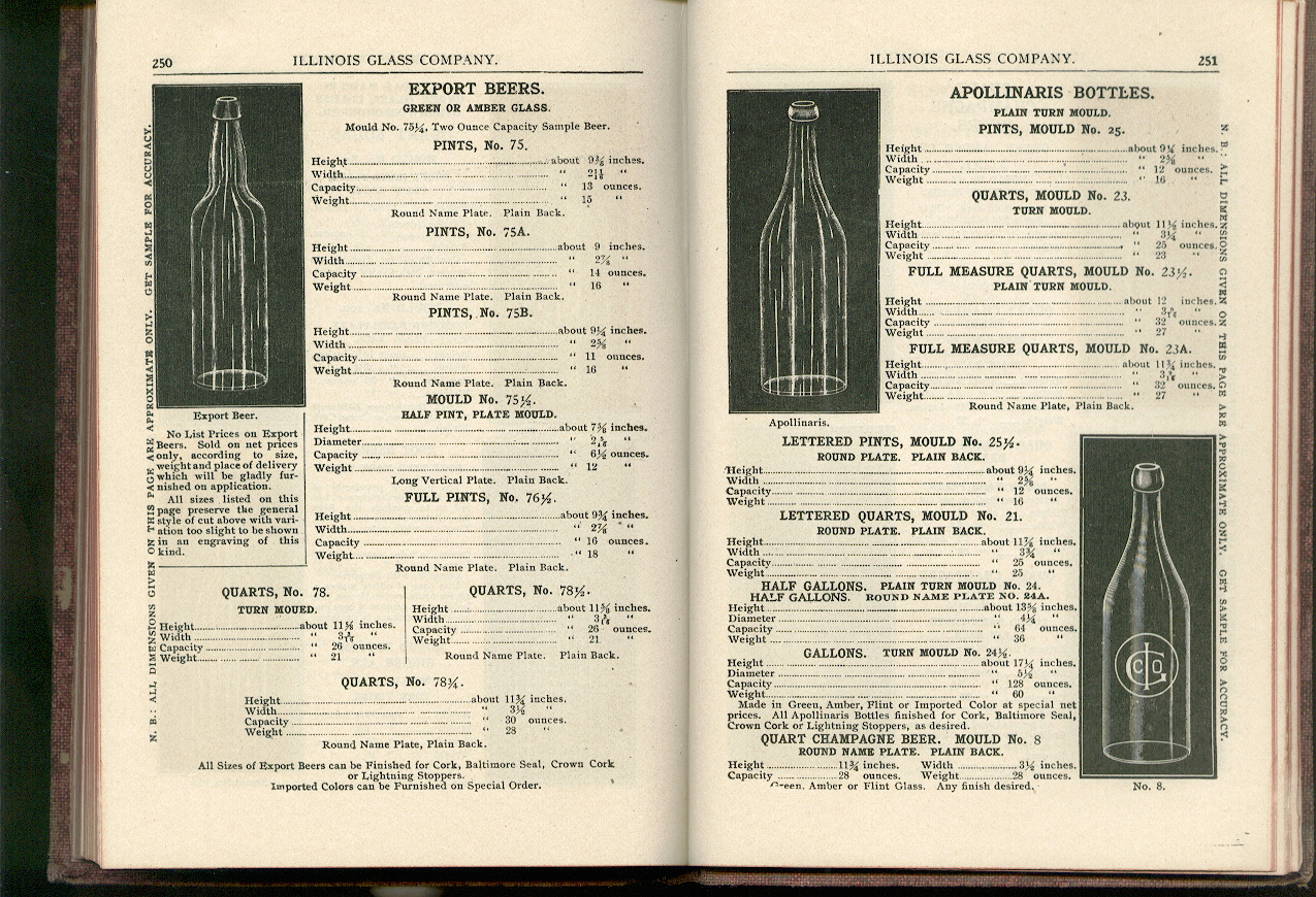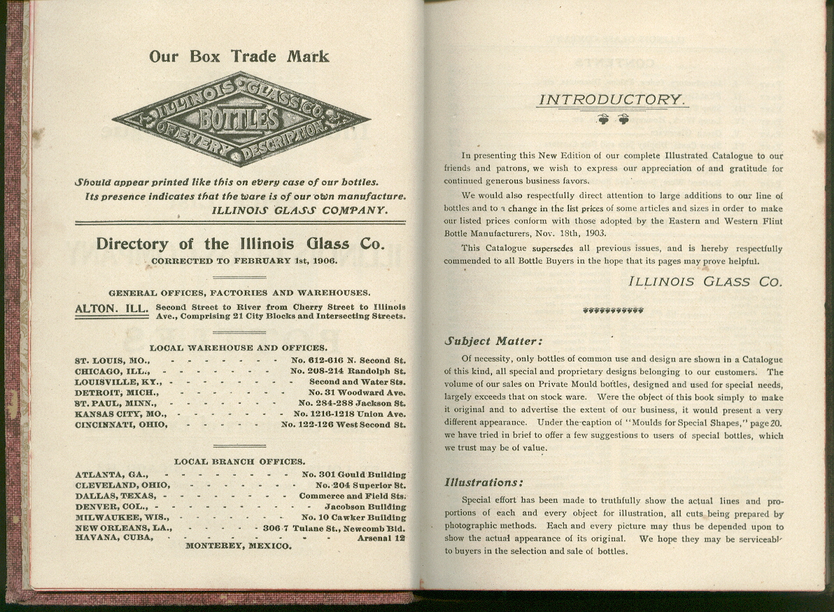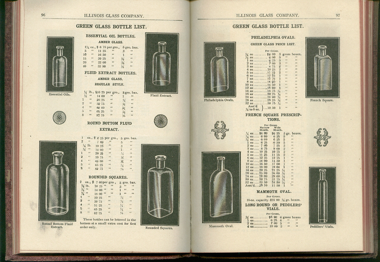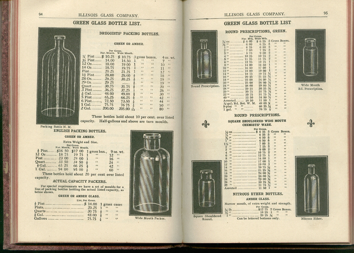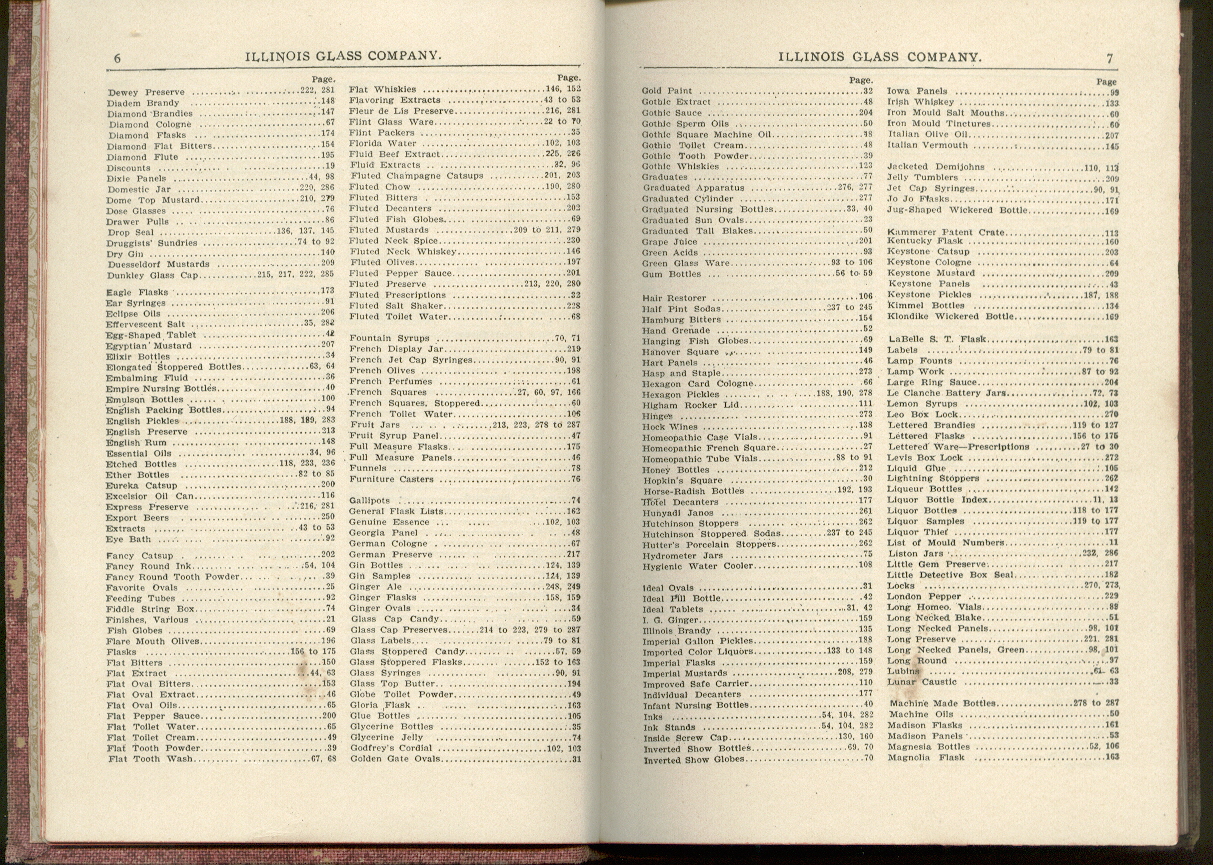 Because of this utility I have reproduced the entire 1906 Illinois Glass Company (IGCo.) catalog on this website; a catalog never reproduced to the authors knowledge. The IGCo. was one of the largest producers of bottles during the late 19th and early 20th centuries (and still is in its current manifestation as the Owens-Illinois, Inc.©) having almost certainly the most comprehensive array of offerings of any bottle maker at the time within all important bottle type categories. Given this dominance, the bottle styles listed in their catalogs - and to a large degree the style names used - are typical of the offerings of most bottle makers of that time making the IGCo. catalogs one of the more important catalogs of the era to researchers.
