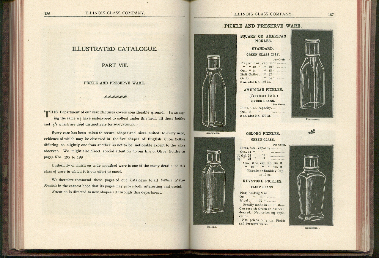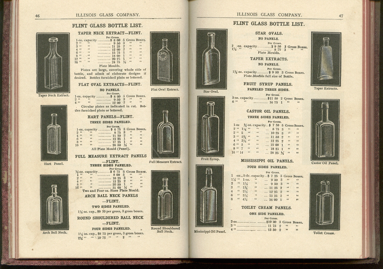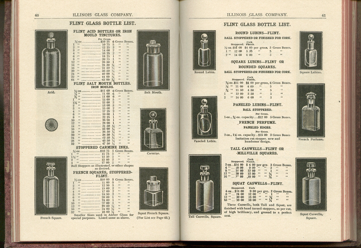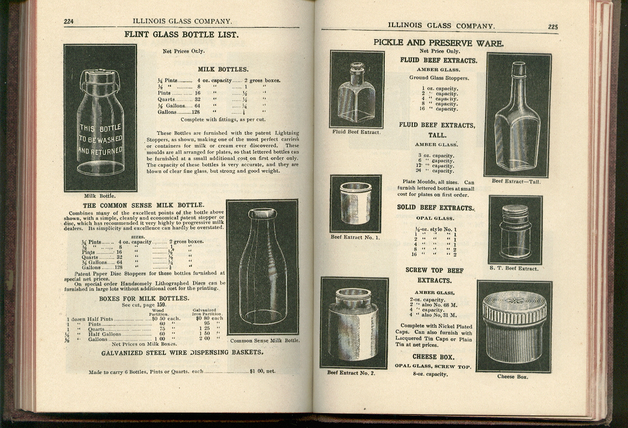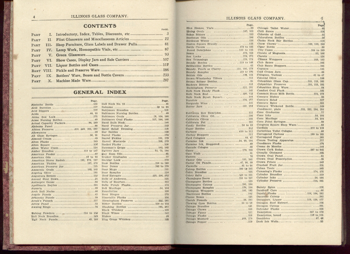 Because of this utility I have reproduced the entire 1906 Illinois Glass Company (IGCo.) catalog on this website; a catalog never reproduced to the authors knowledge. The IGCo. was one of the largest producers of bottles during the late 19th and early 20th centuries (and still is in its current manifestation as the Owens-Illinois, Inc.©) having almost certainly the most comprehensive array of offerings of any bottle maker at the time within all important bottle type categories. Given this dominance, the bottle styles listed in their catalogs - and to a large degree the style names used - are typical of the offerings of most bottle makers of that time making the IGCo. catalogs one of the more important catalogs of the era to researchers.