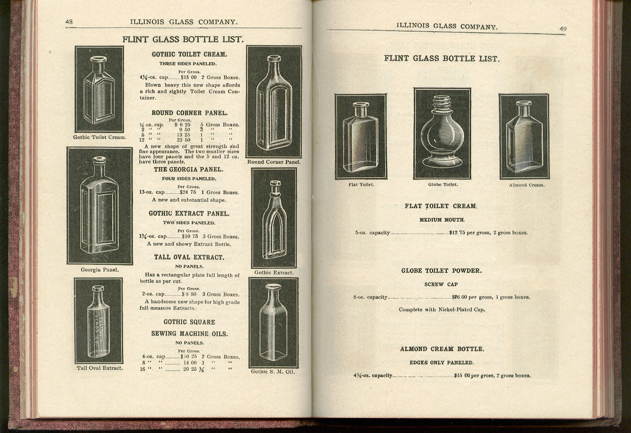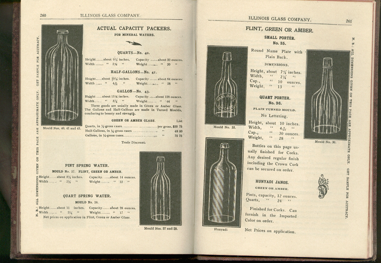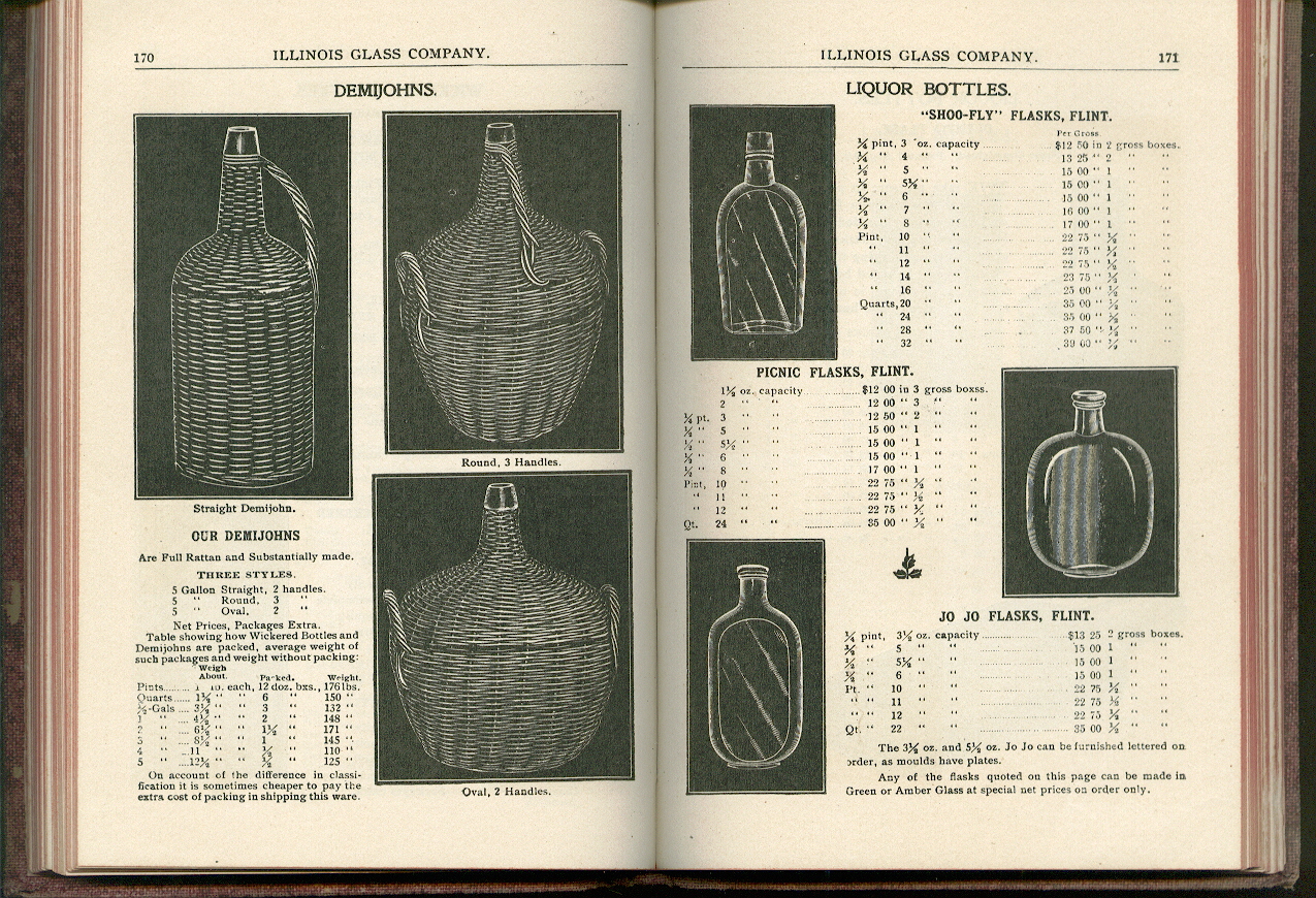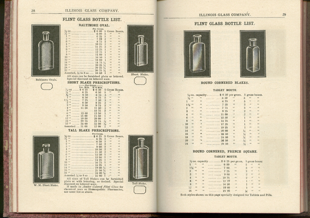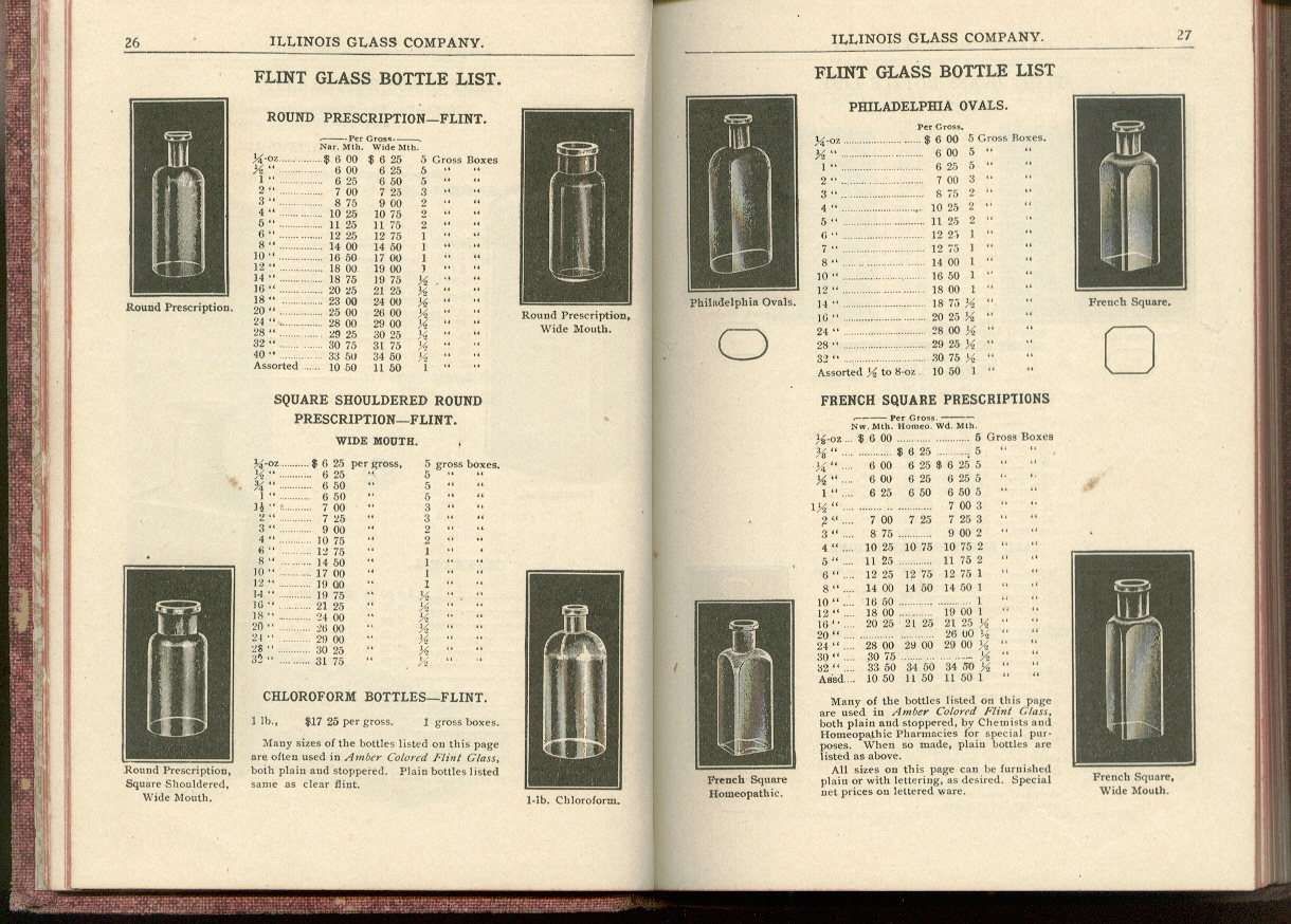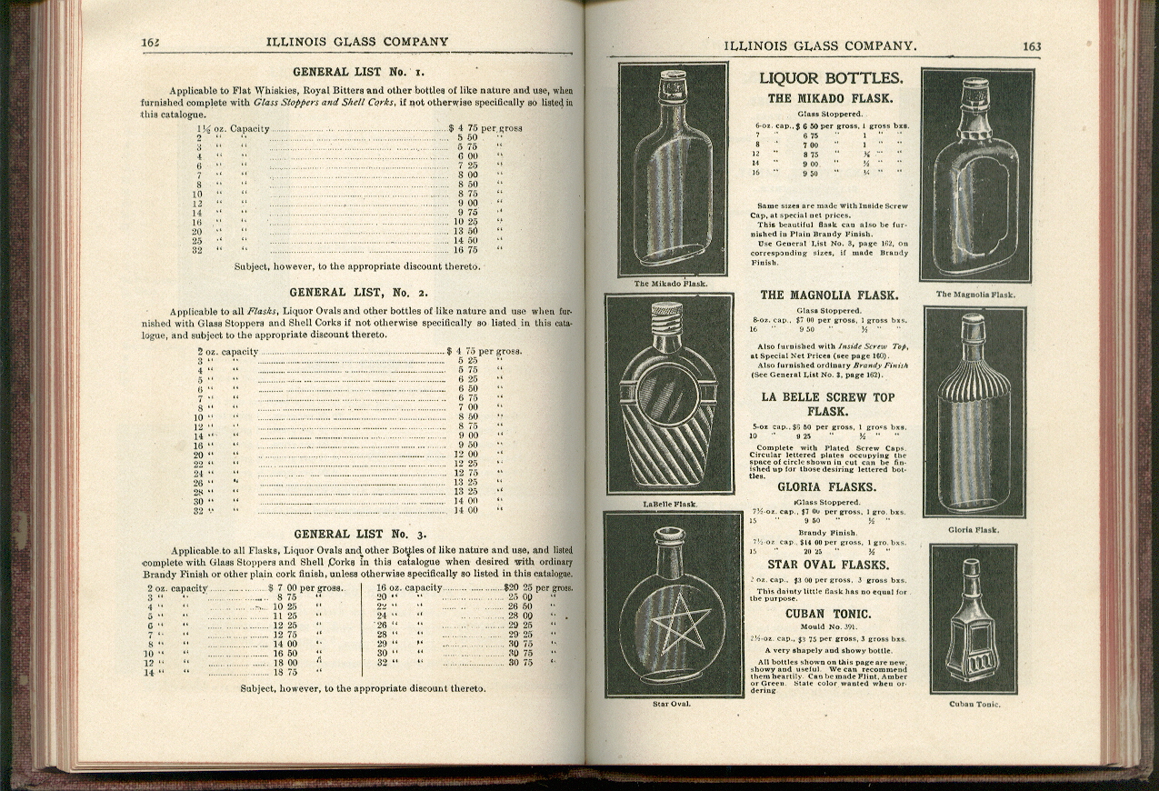 Because of this utility I have reproduced the entire 1906 Illinois Glass Company (IGCo.) catalog on this website; a catalog never reproduced to the authors knowledge. The IGCo. was one of the largest producers of bottles during the late 19th and early 20th centuries (and still is in its current manifestation as the Owens-Illinois, Inc.©) having almost certainly the most comprehensive array of offerings of any bottle maker at the time within all important bottle type categories. Given this dominance, the bottle styles listed in their catalogs - and to a large degree the style names used - are typical of the offerings of most bottle makers of that time making the IGCo. catalogs one of the more important catalogs of the era to researchers.