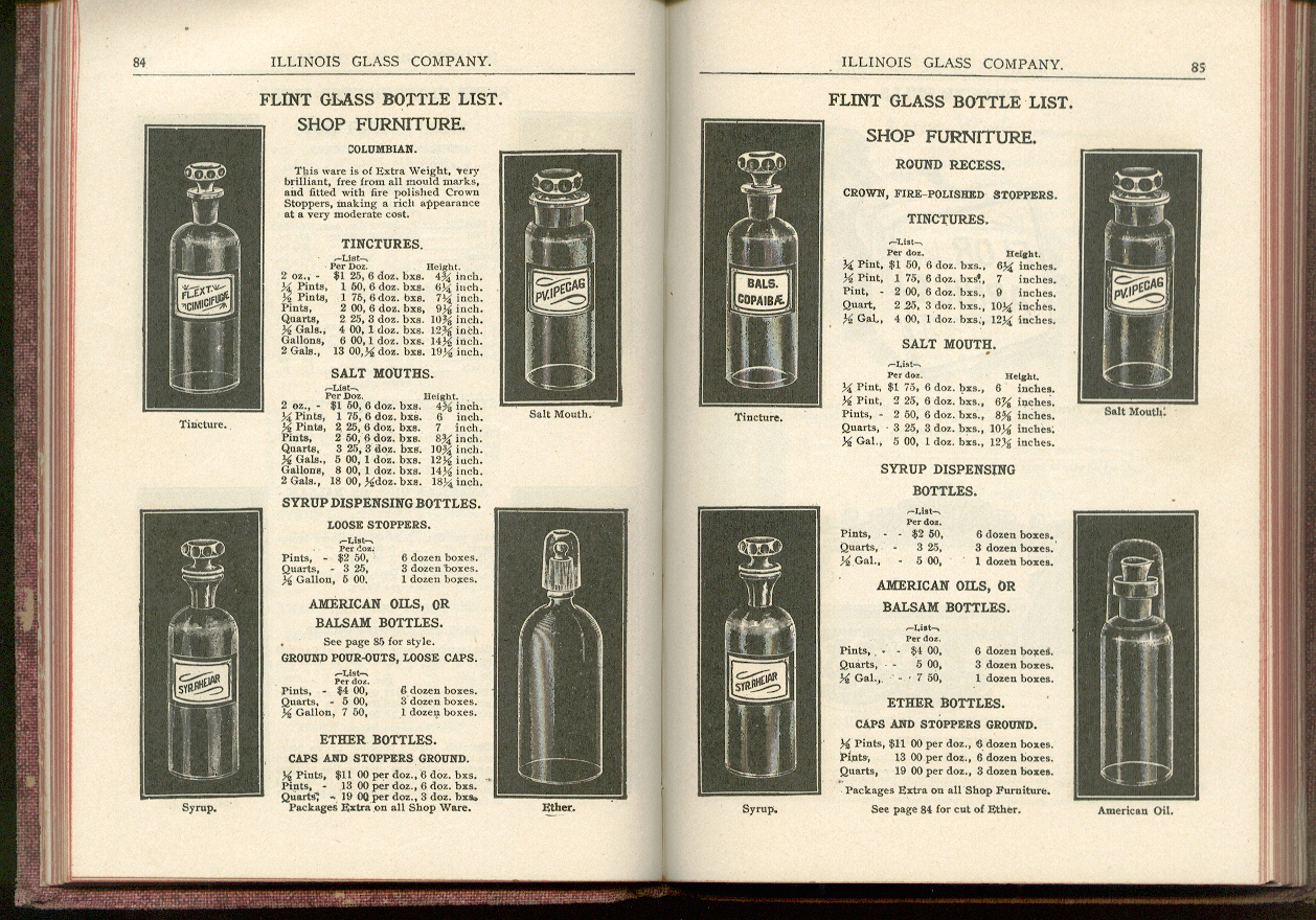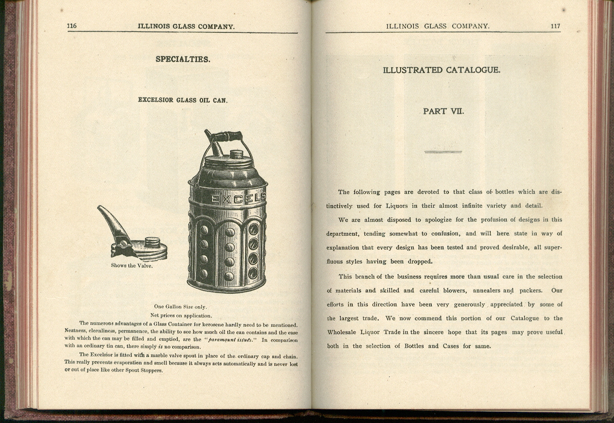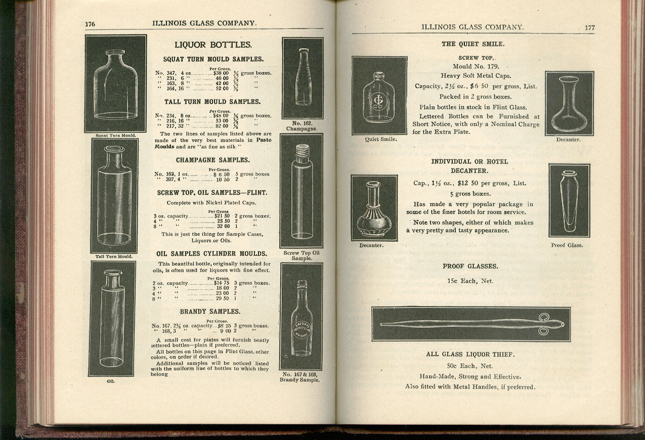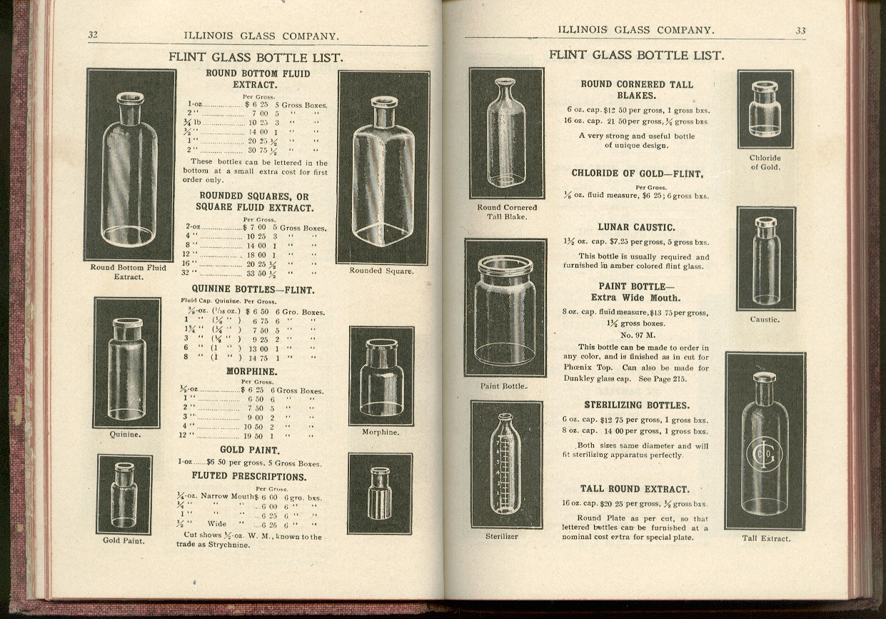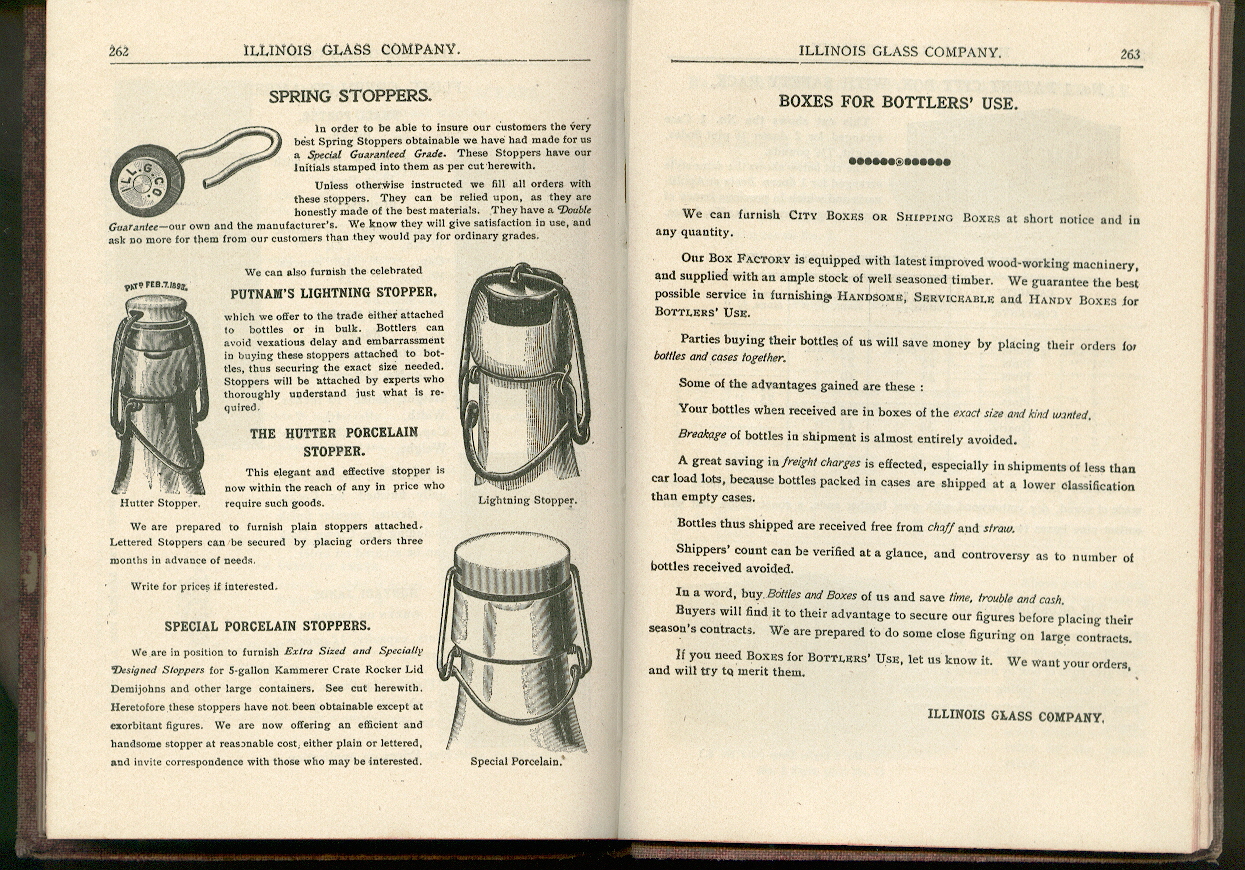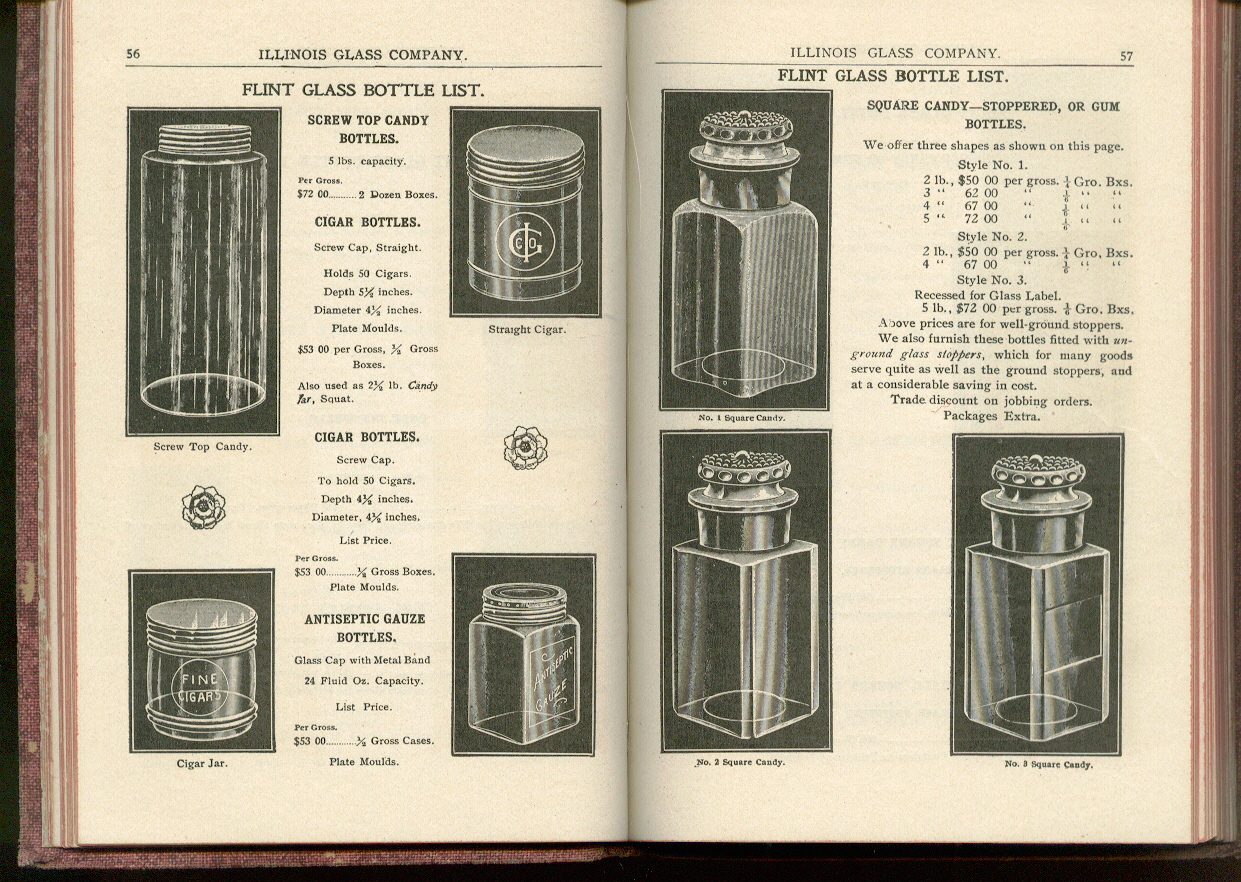 Because of this utility I have reproduced the entire 1906 Illinois Glass Company (IGCo.) catalog on this website; a catalog never reproduced to the authors knowledge. The IGCo. was one of the largest producers of bottles during the late 19th and early 20th centuries (and still is in its current manifestation as the Owens-Illinois, Inc.©) having almost certainly the most comprehensive array of offerings of any bottle maker at the time within all important bottle type categories. Given this dominance, the bottle styles listed in their catalogs - and to a large degree the style names used - are typical of the offerings of most bottle makers of that time making the IGCo. catalogs one of the more important catalogs of the era to researchers.