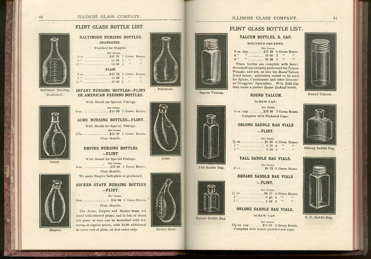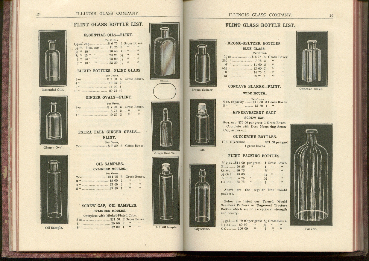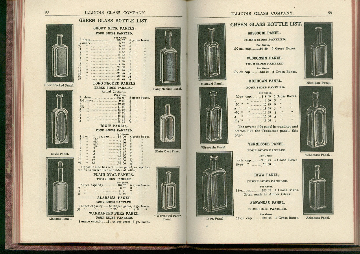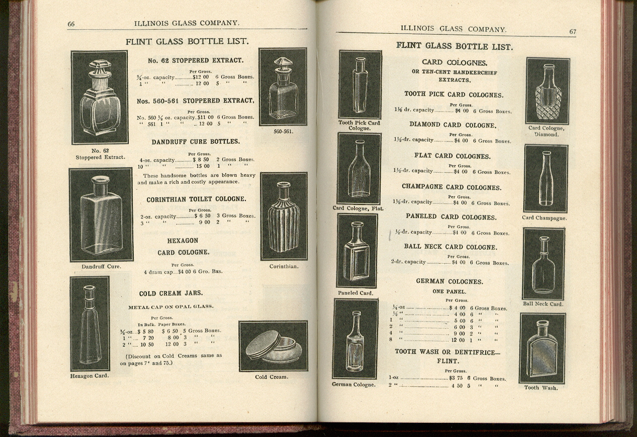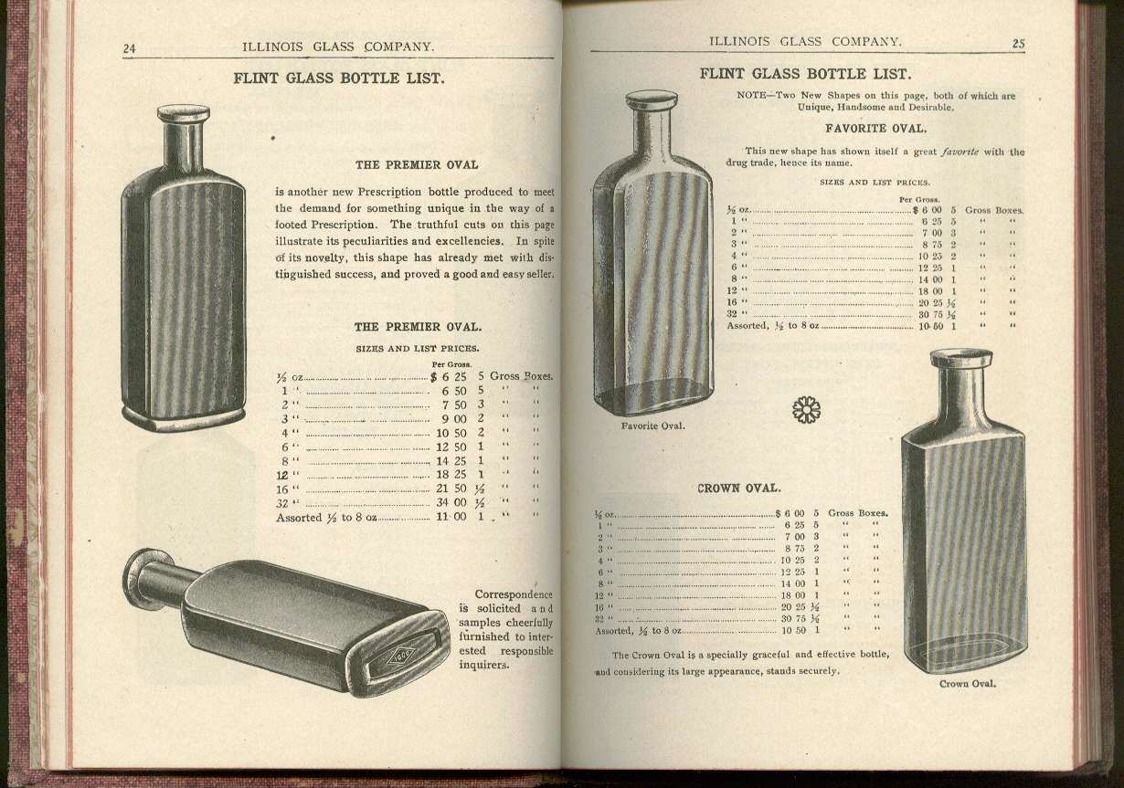 Because of this utility I have reproduced the entire 1906 Illinois Glass Company (IGCo.) catalog on this website; a catalog never reproduced to the authors knowledge. The IGCo. was one of the largest producers of bottles during the late 19th and early 20th centuries (and still is in its current manifestation as the Owens-Illinois, Inc.©) having almost certainly the most comprehensive array of offerings of any bottle maker at the time within all important bottle type categories. Given this dominance, the bottle styles listed in their catalogs - and to a large degree the style names used - are typical of the offerings of most bottle makers of that time making the IGCo. catalogs one of the more important catalogs of the era to researchers.