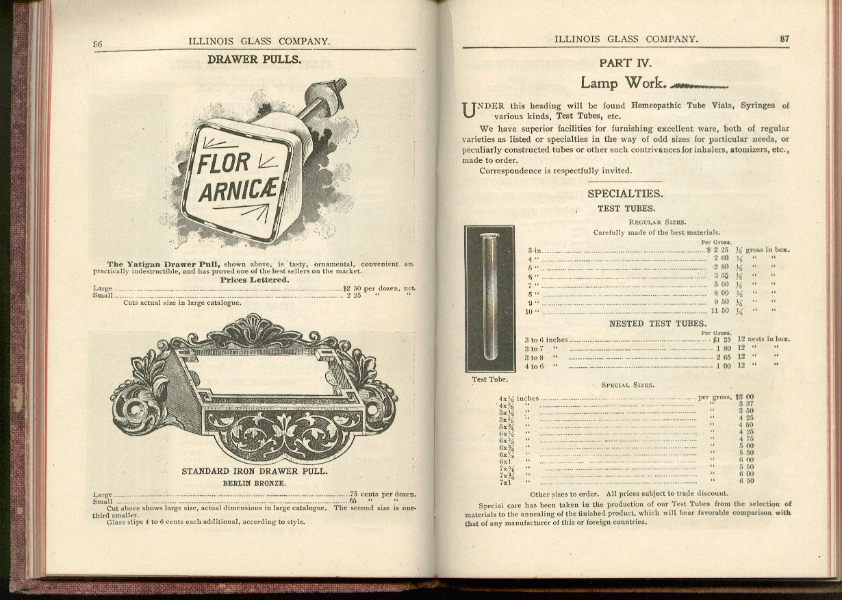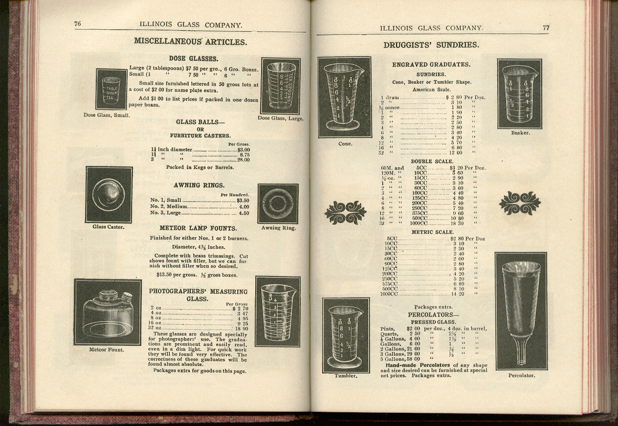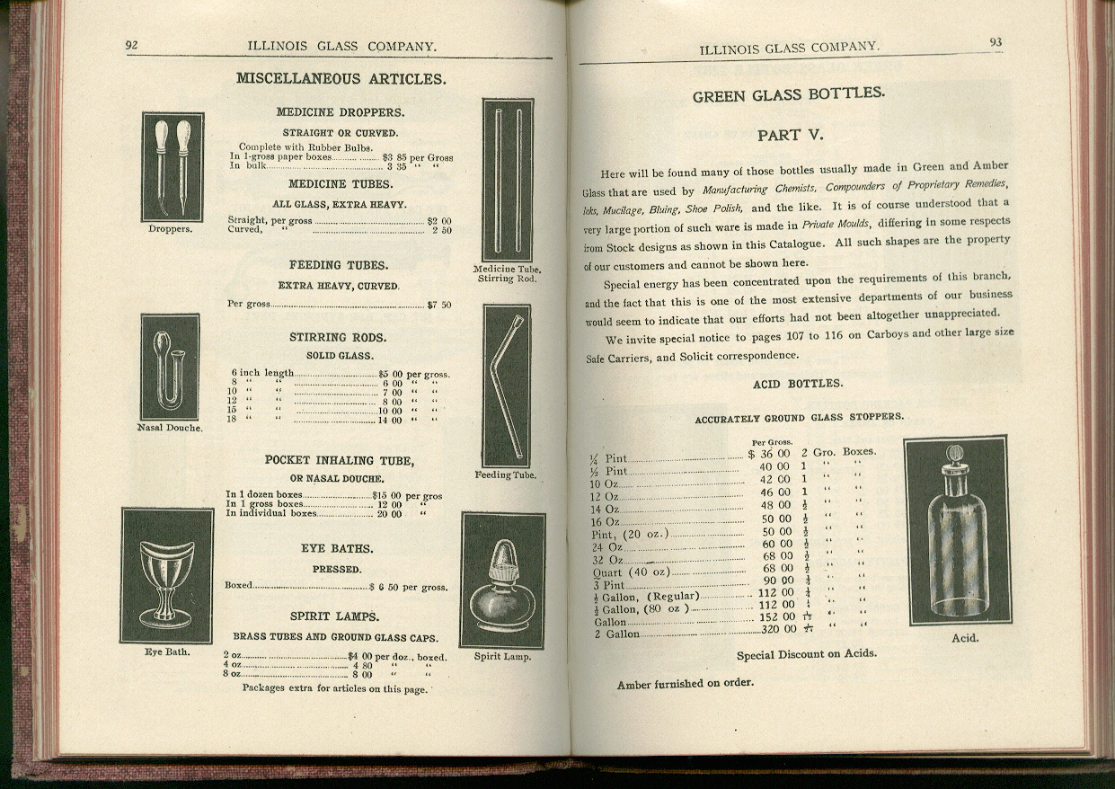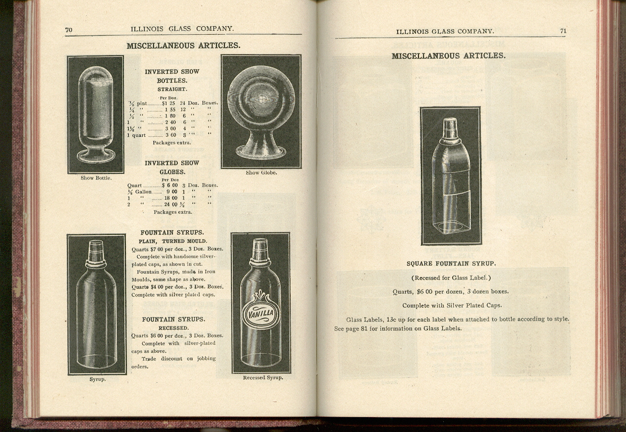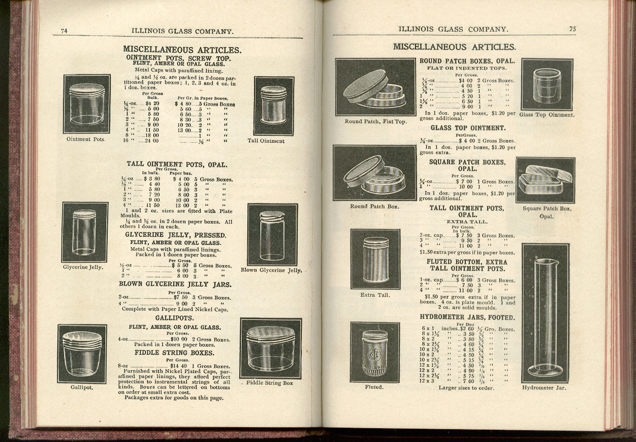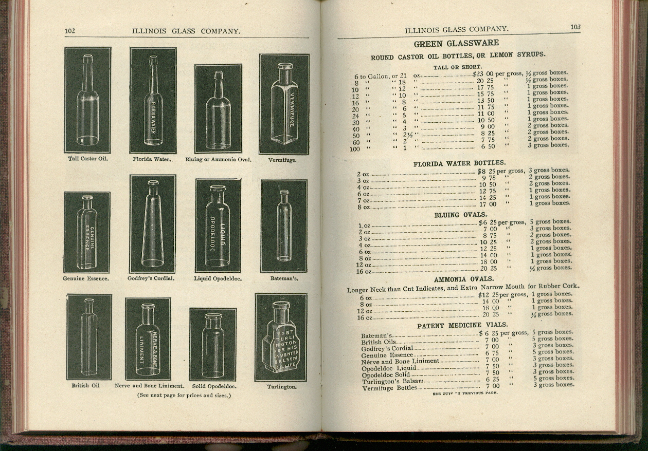Because of this utility I have reproduced the entire 1906 Illinois Glass Company (IGCo.) catalog on this website; a catalog never reproduced to the authors knowledge. The IGCo. was one of the largest producers of bottles during the late 19th and early 20th centuries (and still is in its current manifestation as the Owens-Illinois, Inc.©) having almost certainly the most comprehensive array of offerings of any bottle maker at the time within all important bottle type categories. Given this dominance, the bottle styles listed in their catalogs - and to a large degree the style names used - are typical of the offerings of most bottle makers of that time making the IGCo. catalogs one of the more important catalogs of the era to researchers.