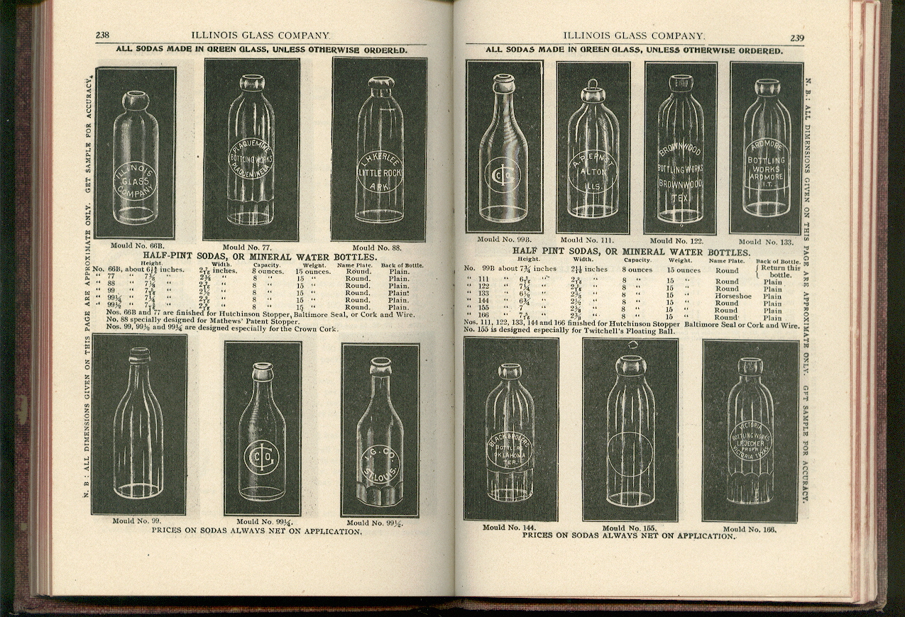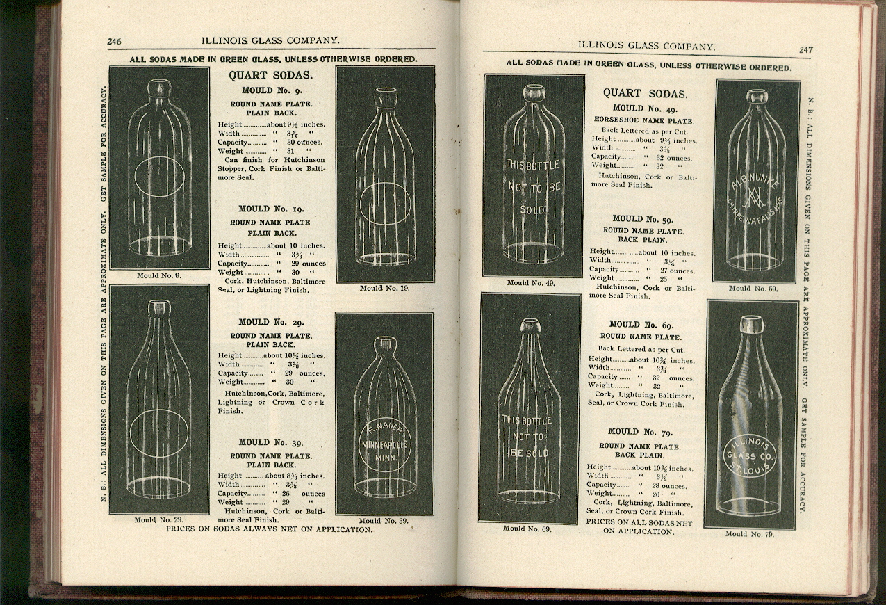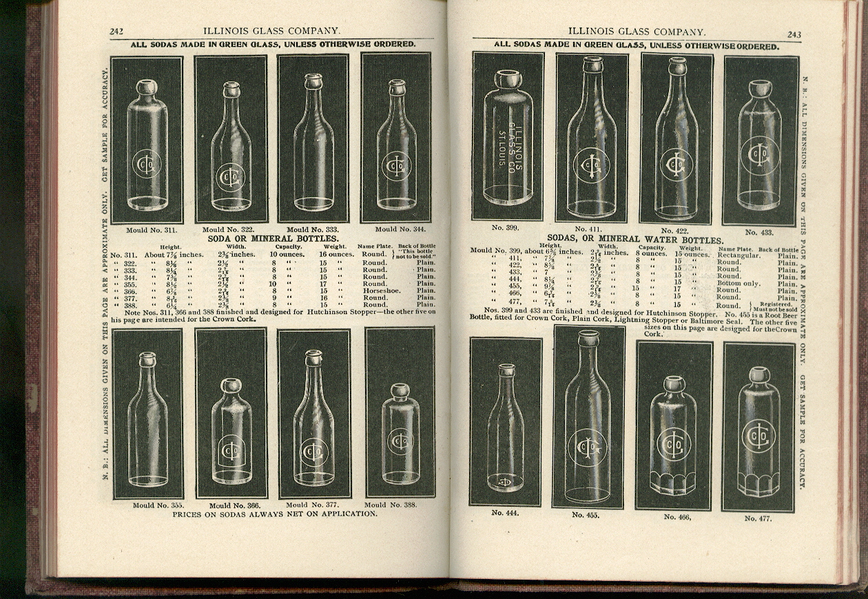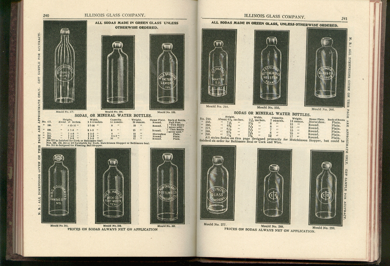 Lockhart, Bill, Pete Schulz, Beau Schriever, Bill Lindsey, and Carol Serr with contributions from Russ Hoenig and David Whitten. 2016p. Illinois Glass Company. Historic Glass Bottle Identification & Information Website, E-published August 2016. Article on probably the largest bottle maker during the last third of the 19th through the first quarter of the 20th century. This updated article is available at this link: https://secure-sha.org/bottle/pdffiles/IGCo.pdf This article is part of the Encyclopedia of Manufacturers Marks on Glass Containers. This article also has an appendix of soda bottle mold/catalog codes used from 1896 to 1920. It is available at this link: Appendix A - Illinois Glass Co. Catalog Codes (Mold Numbers) for Soda Bottles 1896-1920.