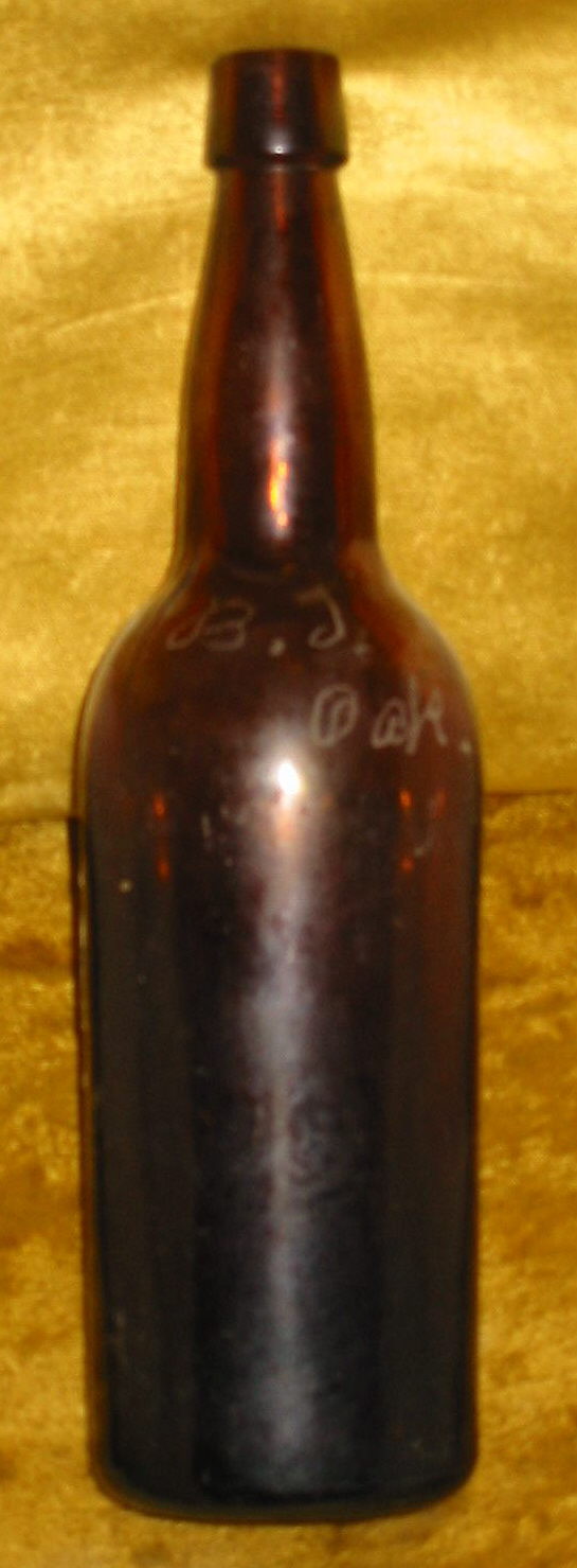 liquor bottle is mouth-blown and dates from the 1890s to 1915 era; the