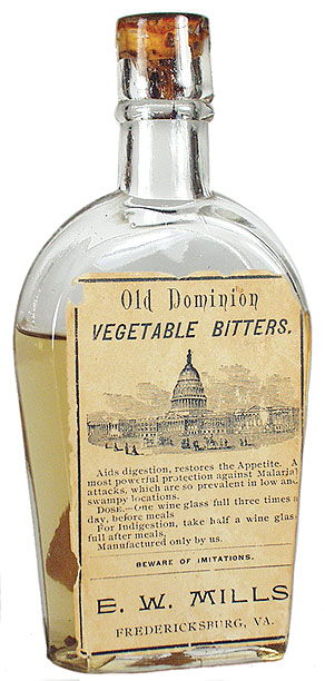 shoo-fly "liquor" flask used for Old Dominion Vegetable Bitters