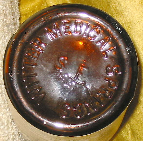 embossed with WITTER MEDICAL SPRINGS (in a circle) with S. F. in the