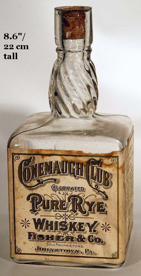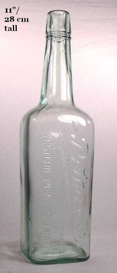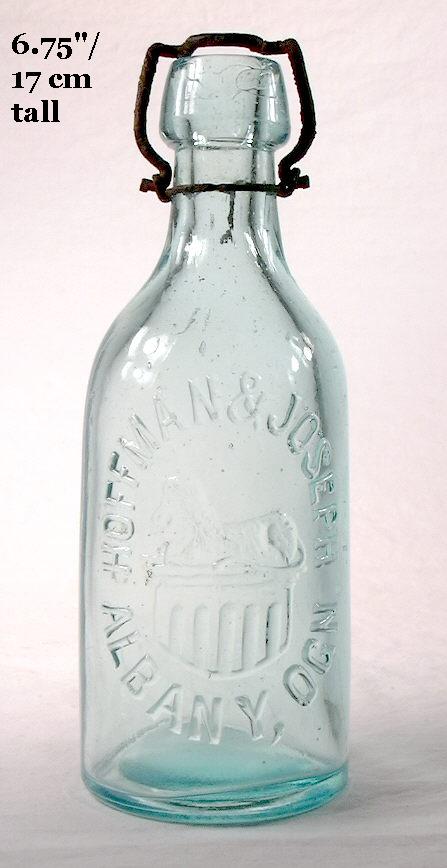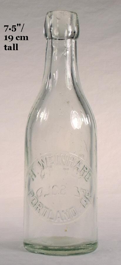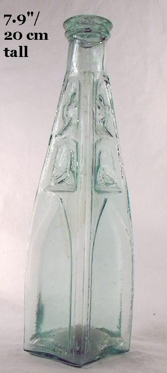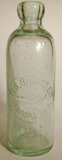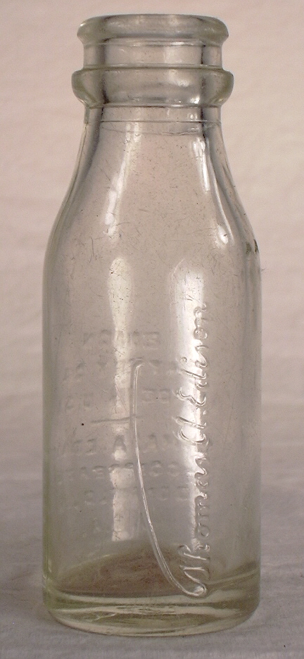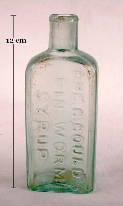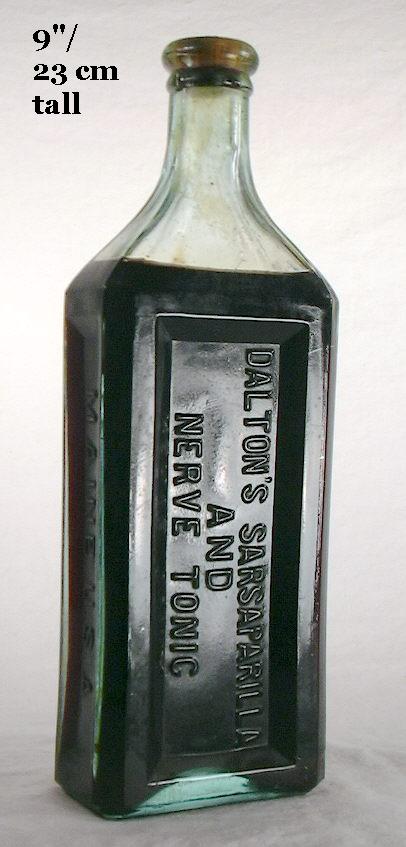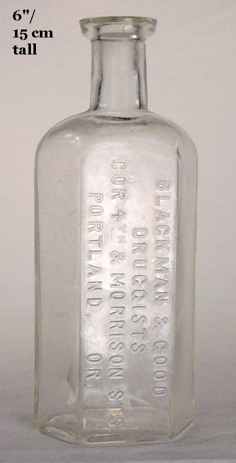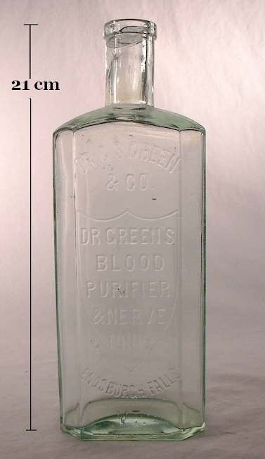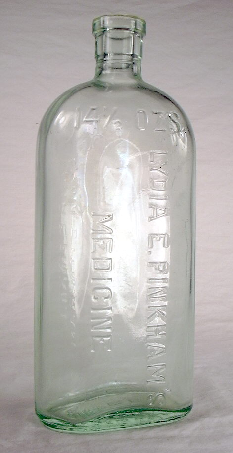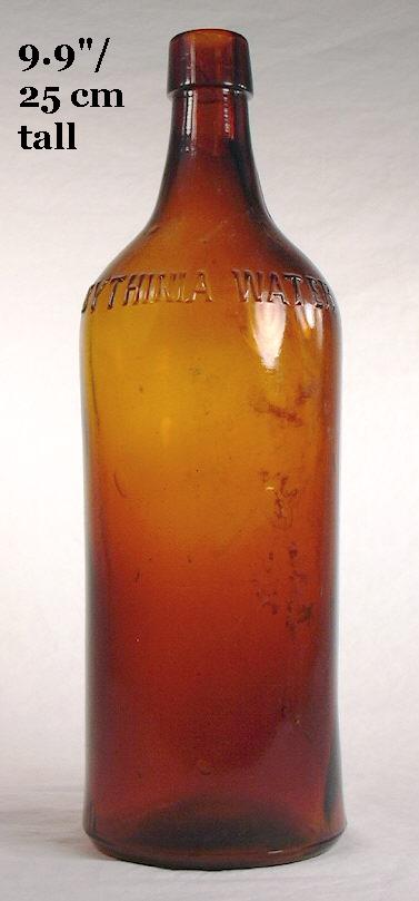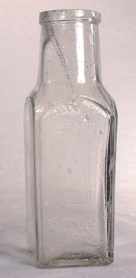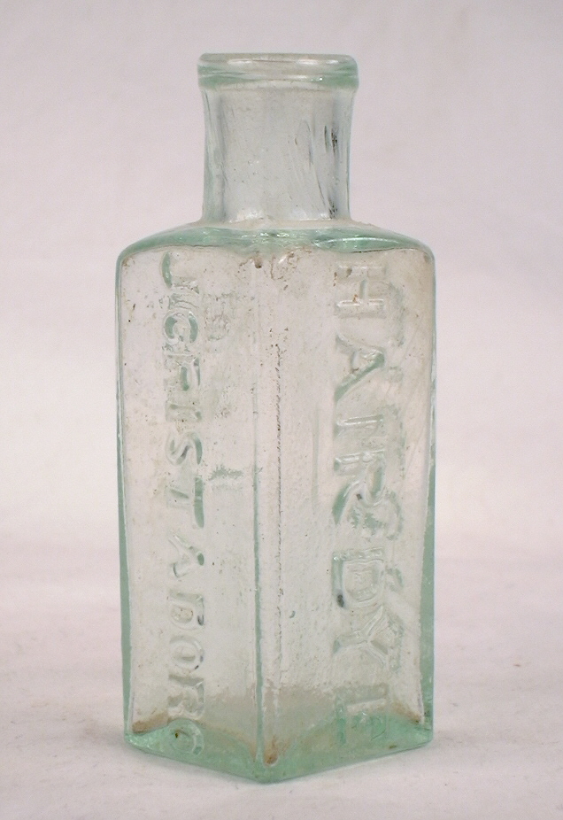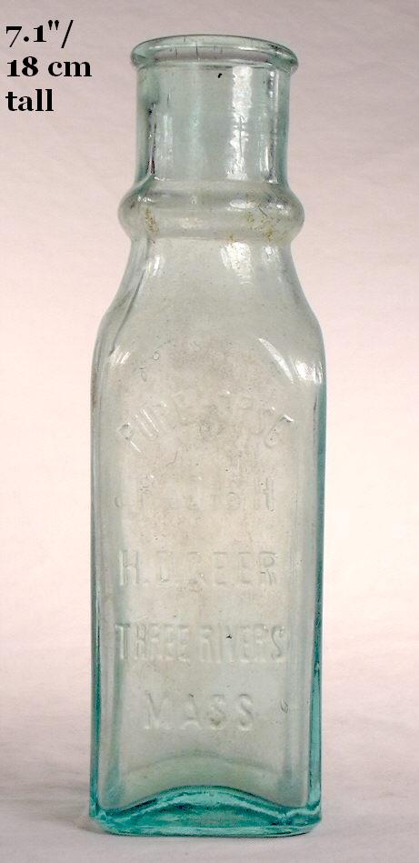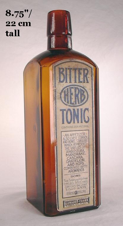 However, consumers of the time - just like today - looked for certain products in certain shaped packages. Because of this most users of bottles used some accepted or standard shape for a given product. A square, short necked bottle like that pictured below was very commonly used for medicinal products and in particular "bitters" which was a very popular type of usually high alcohol medicinal product during the 19th and early 20th centuries. This general shape was also used for "schnapps" - another high alcohol nominally medicinal product. In fact, early bottle makers called this shape either a "bitters" or a "schnapps" (Illinois Glass Co. 1903-04, Alther 1909). If the bottle is embossed (or labeled) with the product name or type, then one knows for sure what it originally contained. If the bottle is not embossed or labeled, then the shape can still be very indicative of what the contents most likely were. 2. Any given bottle could have been recycled and reused many times for totally unrelated products.