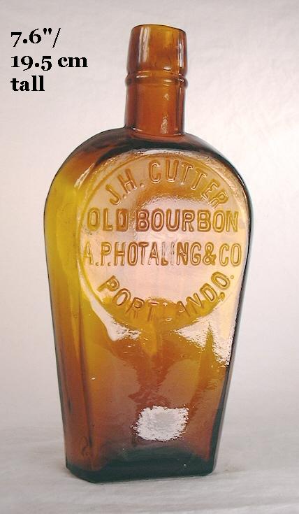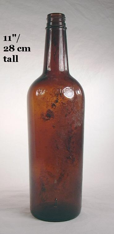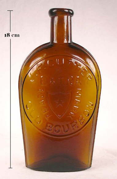 Regardless of the above points, there is still a high correlation between the shape of a bottle and the primary and/or original use of the bottle. These Bottle Typing pages (and website in general) deal with the fact that a given shape (or manufacturing related attribute) was dominant during a certain period of time and/or for a certain product. This information is also premised on that fact that the probability is high - but not absolute - that any given bottle with a similar shape was likely used for the same type of product. For example an unembossed tall, amber glass, cylinder bottle similar to the Tea Kettle Old Bourbon bottle pictured above is highly likely to have also been used for some type of noncarbonated alcoholic beverage.