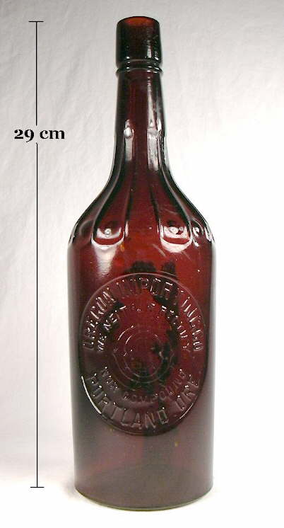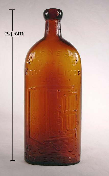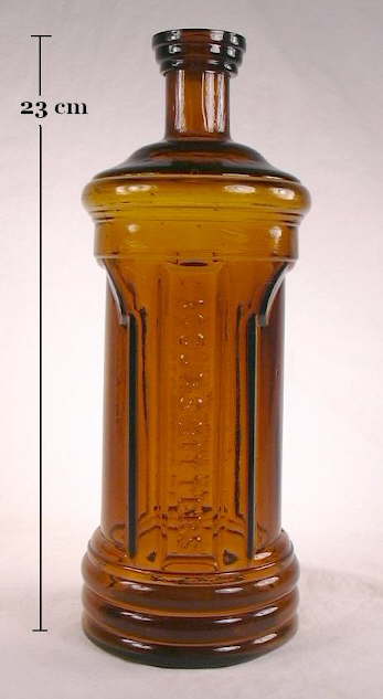 if one considers the tall, amber cylinder bottle pictured to the left which is embossed