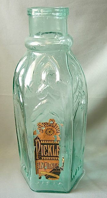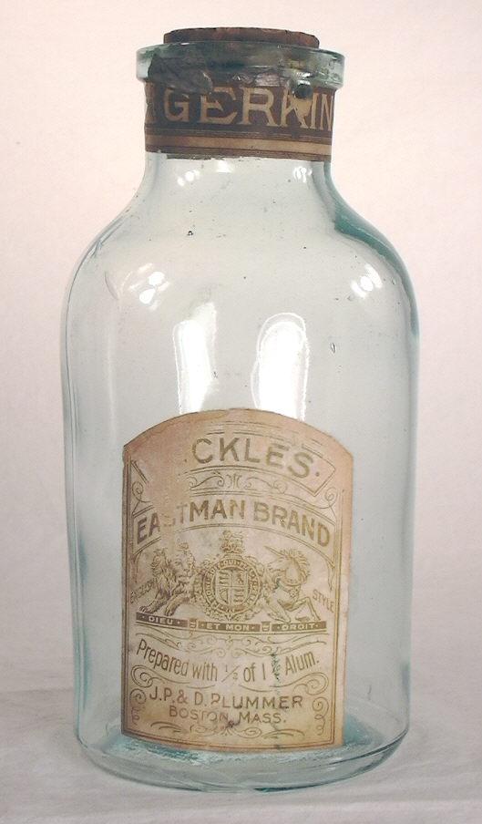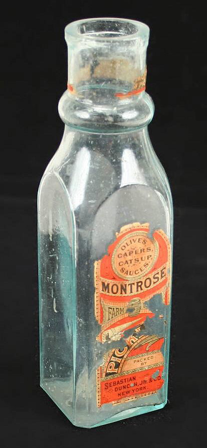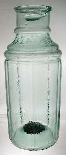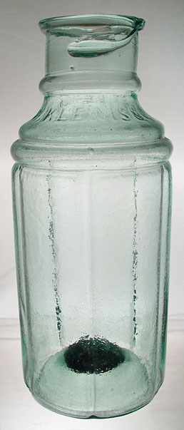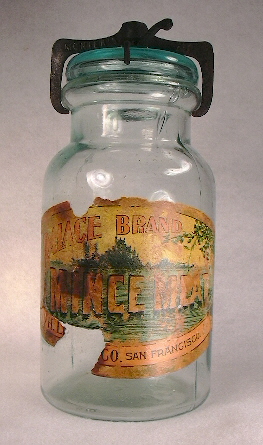 Some of the basic food bottle shapes continued in production well into the late 20th century (particularly fruit jars), though most did not. Similar to the medicinal products covered above, food products are largely contained in plastic containers of all sorts in recent decades though there are various glass bottles and jars in use today that do exhibit some of their historical heritage. Because of the wide diversity of shapes used in the past, the Food Bottles & Canning jars Bottle typing webpage (linked below) is relatively large. As with all historic bottle types and shapes, there is a wide variation of subtle differences to be found within the various diagnostic shape classes which are covered in this section; thus, don't dwell to closely on minor nuances. From this point a user needs to either scan the thumbnail images below to find the food bottle or fruit/canning type they are interested in or click Bottle Typing/Diagnostic Shapes: Food Bottles & Canning Jars to move to that page which specifically covers the various types of food and food related bottles/jars commonly produced and used during the era covered by this website - the 19th century through mid 20th century. This page covers the major form classes or categories of these bottles as follows (these are divided further a bit on the Food Bottles & Canning Jars page):