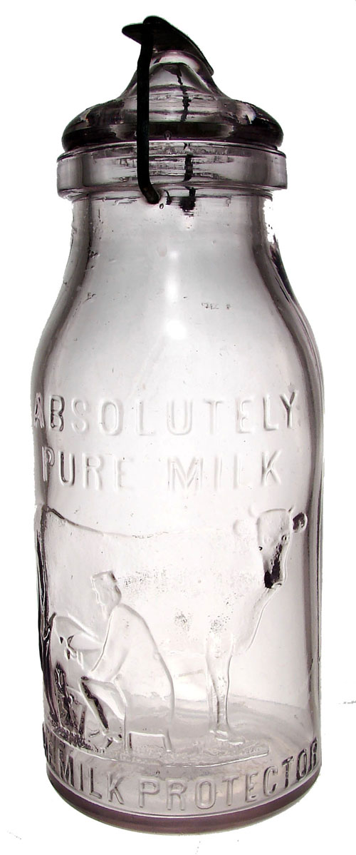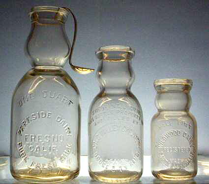 *Note: Some authors classify milk bottles within the "beverage" category and not as a "food" bottle. This website does not use a specific "beverage bottle" category, but instead divides what would be sub-classes under beverages (liquor, beer, soda, etc.) into their own specific types due to the breadth of variety and examples within those categories. Given this structure, milk bottles could either be a separate category, or being widely considered as a food (and surely as a base for other food products like cheese), included within the food bottle group...which is what has been done. This very large category and webpage will most likely need divided further in the future. More specifically, the canning/fruit jars section and possibly milk bottles may be made into their own separate webpages. The following thumbnail images of different food bottles & canning jars may be clicked to view a larger version of that picture. Search through these images to find the bottle type or shape that you are interested in - or one that is close. A separate webpage containing information about - and additional pictures of - each of these bottles is found at this link: Bottle Typing/Diagnostic Shapes: Food Bottles & Canning Jars. As noted earlier, be aware that the diversity of shape, size, and color of food bottles and canning jars is very extensive and those pictured below are but a sampling of that variety, though does represent commonly encountered types and shapes. The bottles on the Bottle Typing/Diagnostic Shapes: Food Bottles & Canning Jars page are covered in the order that the bottles are pictured below. Click