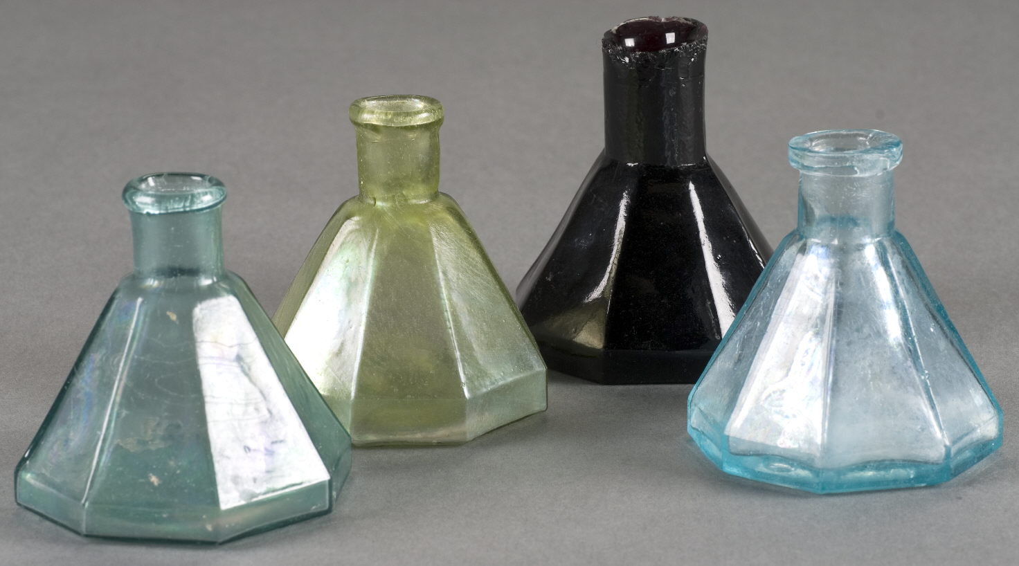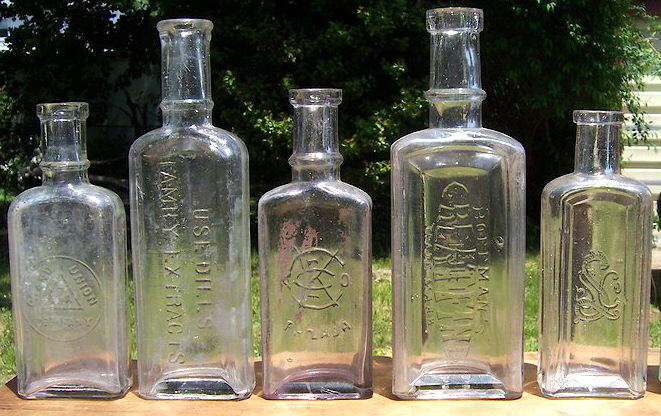 The "household bottles" (aka "personal" bottle) category has been used by archaeologists - and collectors to some degree - for many years although the actual bottle types contained within the category varies significantly (Berge 1980; Univ. of Utah [IMACS] 1992; Felton et al. 1984; Jones & Sullivan 1989). For example, canning/fruit jars which are included by some authors in the "household" bottles category, are covered within this website on the Food Bottles & Canning Jars page (Berge 1980). Another example is that chemical and poison type bottles - which could have been covered on this page or the "Miscellaneous bottles" page - were instead discussed on the Medicinal/Chemical/Druggist bottles typology page (Univ. of Utah [IMACS] 1992). There has never been total agreement on the categorization hierarchy of bottle types and probably never will be. The point behind these typology pages is not to establish a hierarchal classification system for bottle types but instead to help users identify what the most likely function or use was made of the specific bottle shape or type they are interested in determining such for. See the "Organization & Structure" section which follows below for the specific bottle types that this website includes in the "household" category. From this point a user needs to either scan the thumbnail images below to find the household bottle type they are interested in or click Bottle Typing/Diagnostic Shapes: Household Bottles (non-food related) to move to that page which specifically covers the various types of household bottles (non-food related) commonly produced and used during the era covered by this website - the 19th century through mid 20th century. This page covers the major form classes or categories of these bottles as follows (these are divided further on the Household Bottles [non-food related] page):
