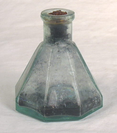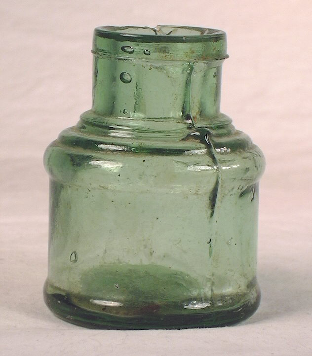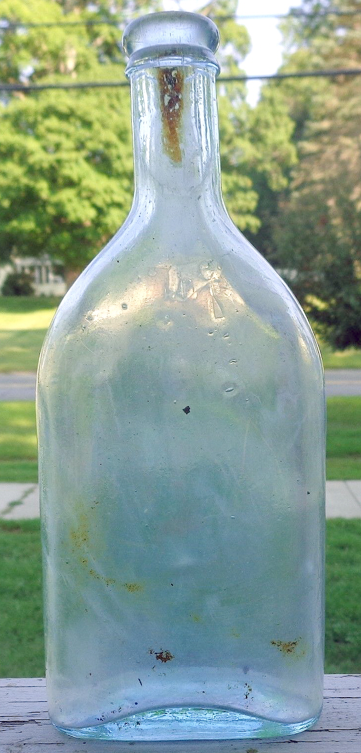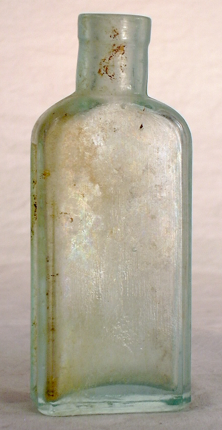 But from when does this bottle date? That is the other primary question most people have about a given bottle besides what it was used for. If this bottle is run through the questions on the Bottle Dating pages, one is able to narrow the manufacturing date of this bottle to between the mid-1860's and early 1880's based on key manufacturing based diagnostic features, i.e., lack of a pontil scar (Question #4), applied finish (Question #5 ), lack of mold air venting (Question #7), and a post-mold base type (Question #6).