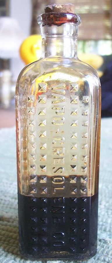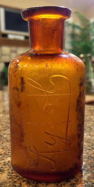 1890's amber bottle pictured to the right is embossed Aromatic / Disinfector /