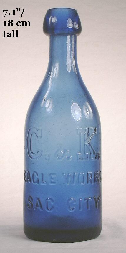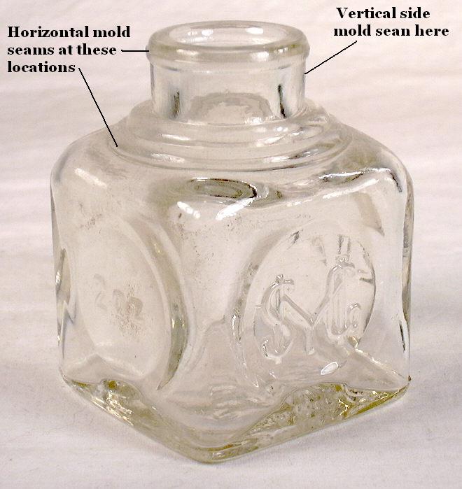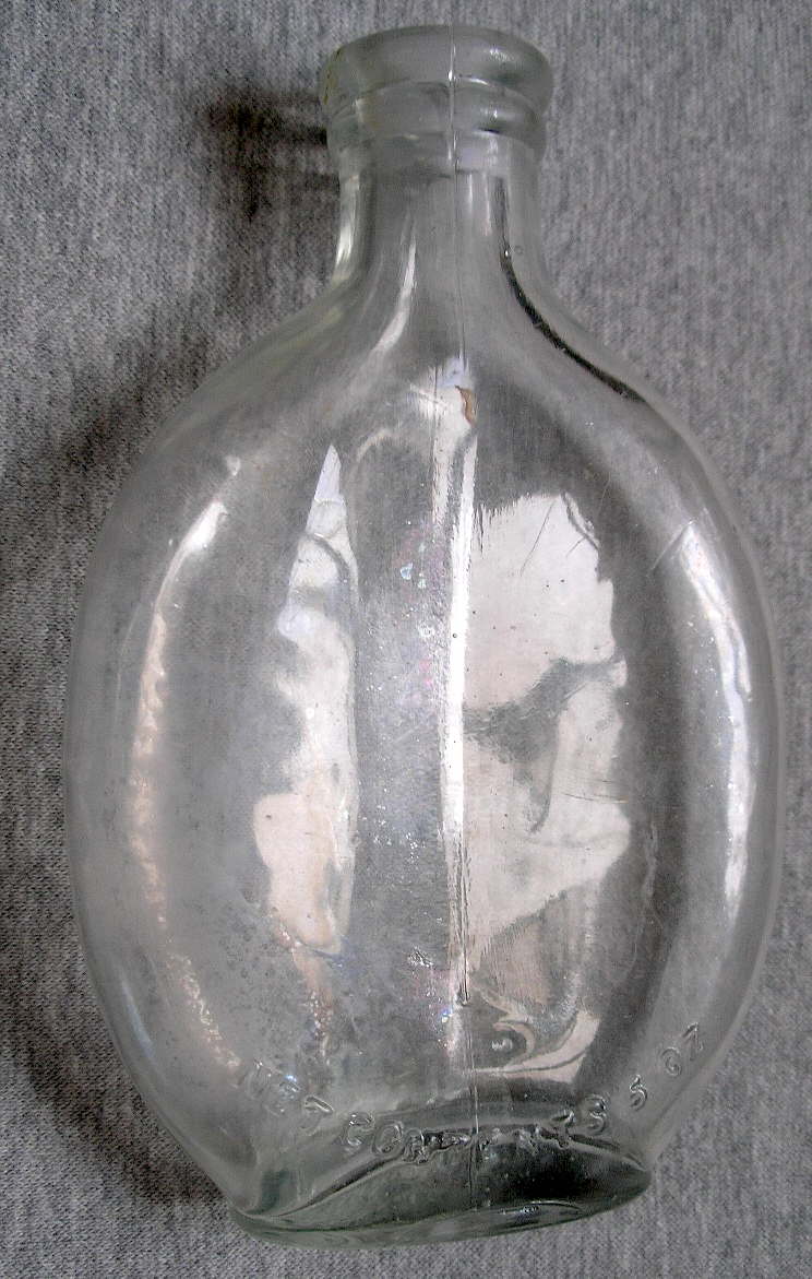 This "Bottle Typing/Diagnostic Shapes" series of pages would also help a user narrow down the date range of this commonly shaped Western liquor bottle to between the mid 1870's and early 1880's. Additionally, the Reference Sources page lists several excellent reference books on Western American liquor bottles which would help flesh out out the story of the Teakettle Old Bourbon bottle and confirm the date range of this bottle as that listed above (Wilson & Wilson 1968; Thomas 1977 & 2002). The point here is that the dual process of both dating a bottle and determining what it was used for (typing) provides mutually complementary information in that the typing often gives clues about the age and the manufacturing related diagnostic features can sometimes provide clues about the bottle type. Consulting other website pages (e.g., "Bottle Bases", "Bottle Body Characteristics & Molds Seams", "Bottle Finishes", etc.) also helps round out the general "story" of a given bottle.