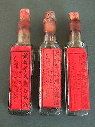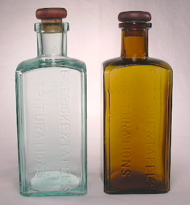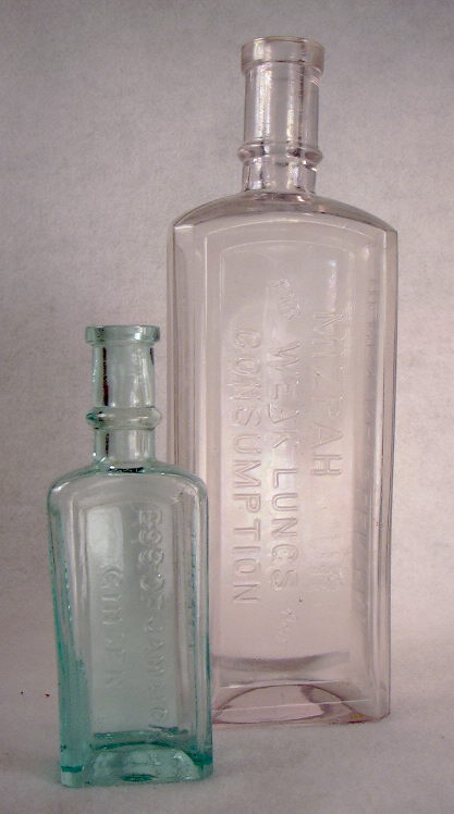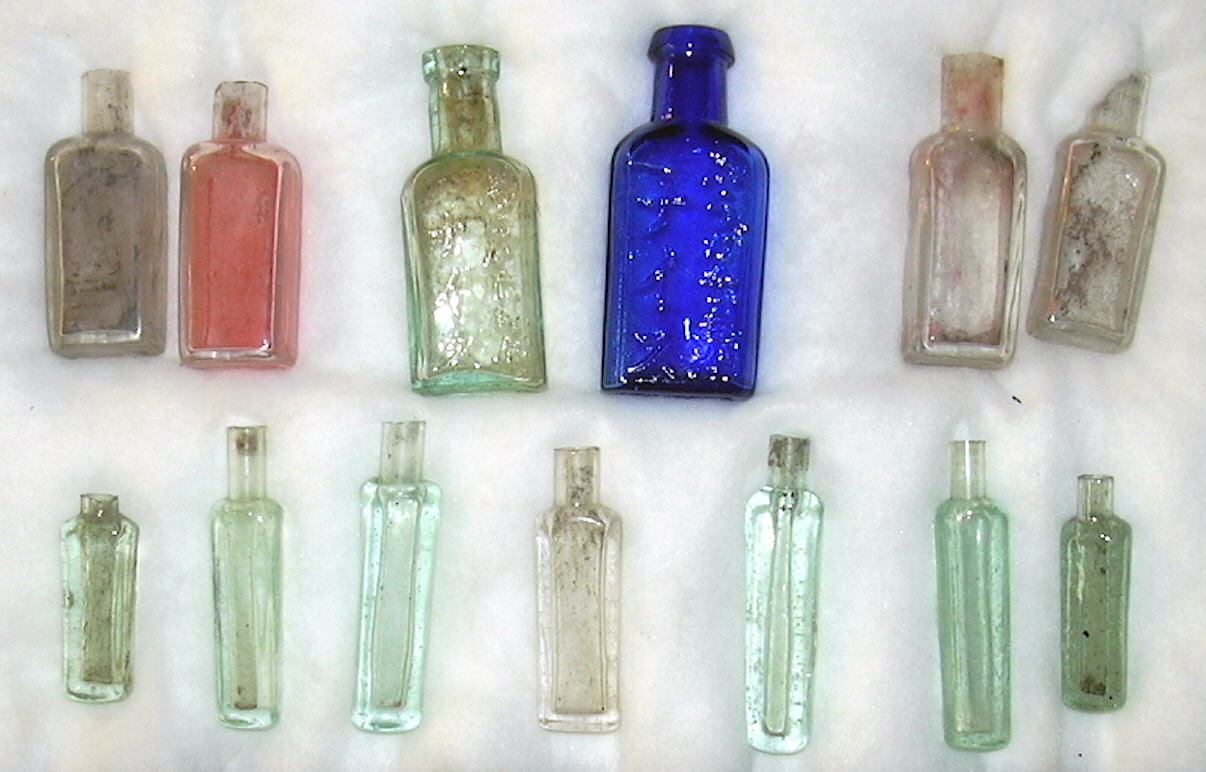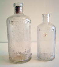 NOTE: Attached to this complex of pages is one that is an ongoing pictorial coverage of all types of bottles with their original labels. This page allows users to see specifically what many different shapes of bottles were used for as the original labels are still intact. Click Labeled bottles to move to that section of this page. |