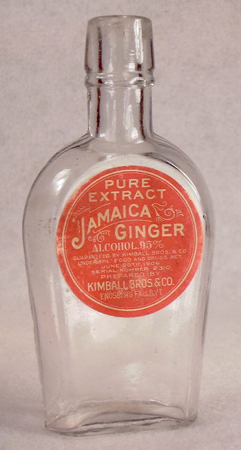 Most bottle shapes were closely associated and identified with a certain product or products as "form follows function" to a large degree in bottle shapes and styles. Soda/mineral water and beer are prime examples of products very closely identified with certain distinct bottle shapes that were rarely used for other products. However, there were many exceptions and different "standard" bottle styles have varying degrees of fidelity to type with some shapes less connected to a specific product than soda and beer bottles. For example during the 19th and early 20th centuries small (one pint or less), flat liquor flasks were also used to contain medicine (often including alcohol however), Jamaica ginger (also high alcohol), vanilla extract, and other liquid products, though 90%+ of these flasks were likely used for liquor (empirical observation/estimate).